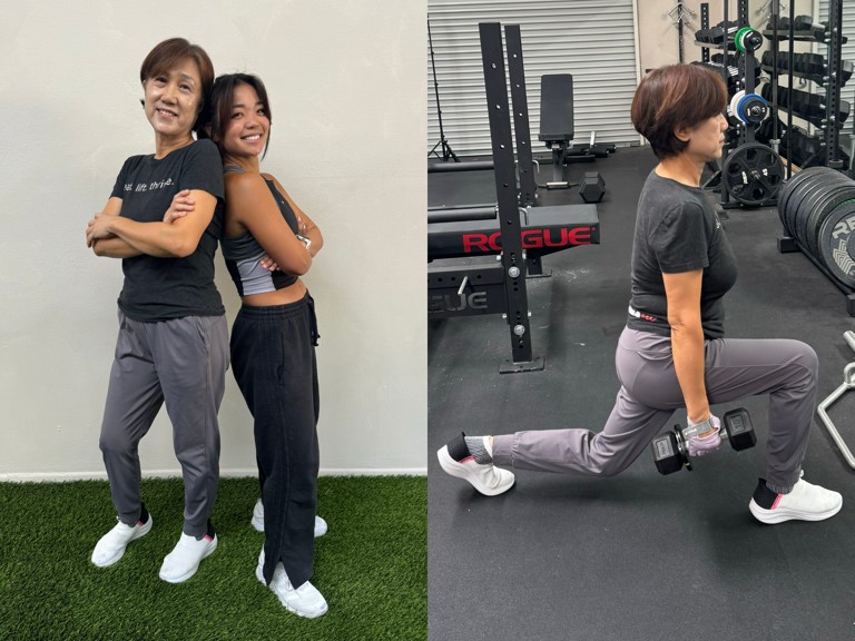 Sohee Carpenter (phải) với tư cách là huấn luyện viên cá nhân đã hỗ trợ mẹ tập luyện trong gần năm năm. © Sohee Carpenter