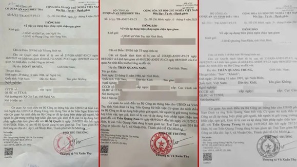 Các thông báo mà BBC News Tiếng Việt được xem, đều do ông Vũ Xuân Thọ – Thượng tá, Phó Thủ trưởng Cơ quan An ninh điều tra Bộ Công an – ký cùng vào ngày 17/9/2025, tức gần ba tuần sau khi các nhà hoạt động này bị bắt giữ.