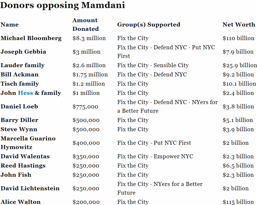 26 tỷ phú đã quyên góp trên 22 triệu đô la để ngăn chặn Mandani trở thành thị trưởng New York