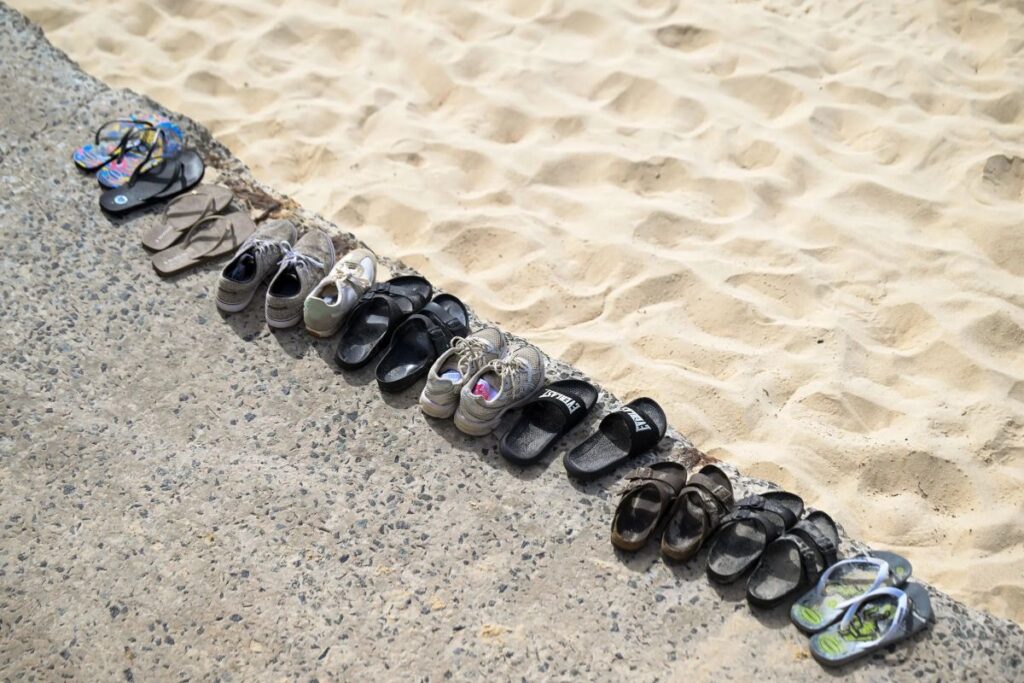 Những đôi giày bị bỏ lại tại hiện trường vụ tấn công nhằm vào người Do Thái ở Úc: Bãi biển Bondi ở Sydney. Izhar Khan / Getty