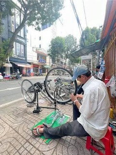 Tấm bảng viết nguệch ngoạc: “Vá xe – 10.000”.